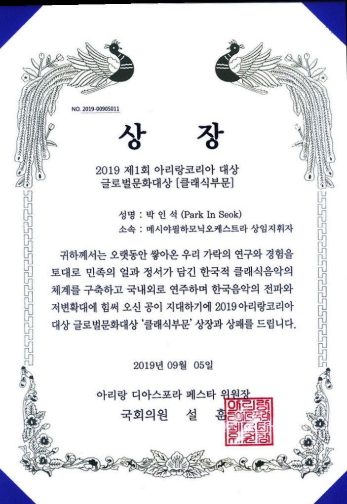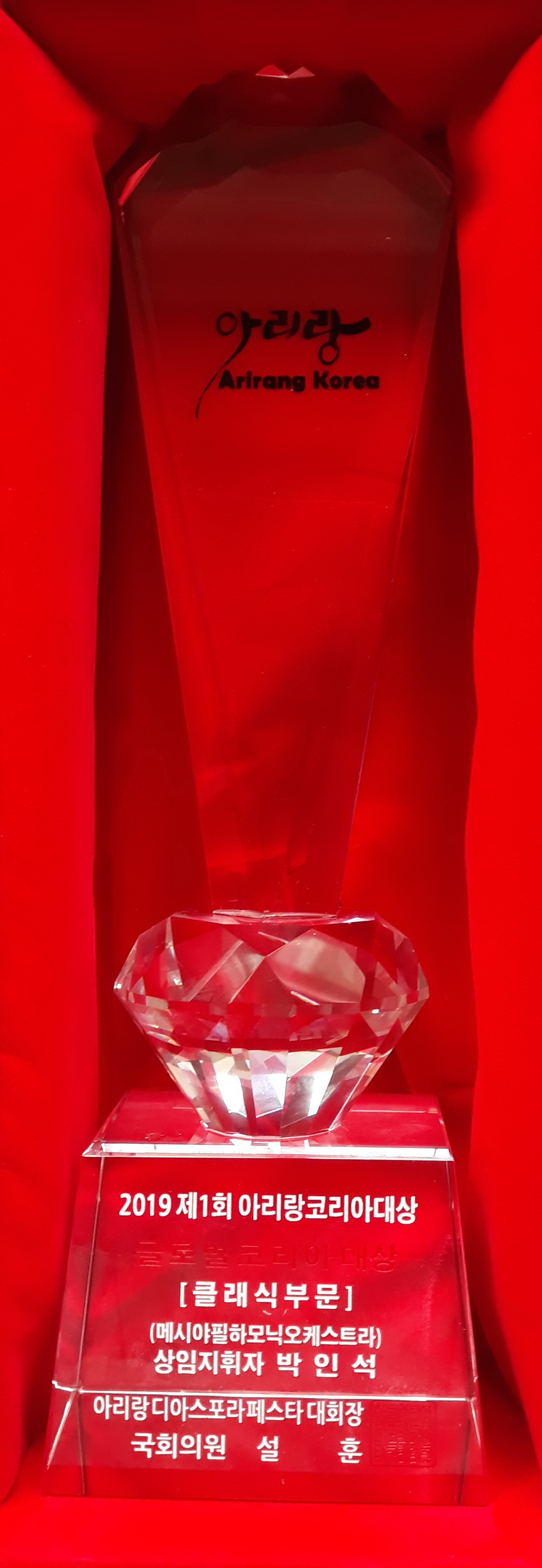 Á¦1ȸ 2019 ´ëÇѹα¹ ¾Æ¸®¶û Korea ´ë»ó ¼ö»ó »óÀå°ú »óÆÐÀÔ´Ï´Ù.