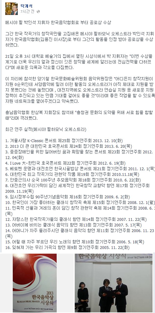 ±¹³» ÃÖ°íÀÇ À½¾ÇÆò·Ð°¡ Ź°è¼®¼±»ý´Ô²²¼ Facebook¿¡ ¿Ã¸®½Å ³»¿ëÀ» ĸÃÄÇÑ °ÍÀÔ´Ï´Ù.