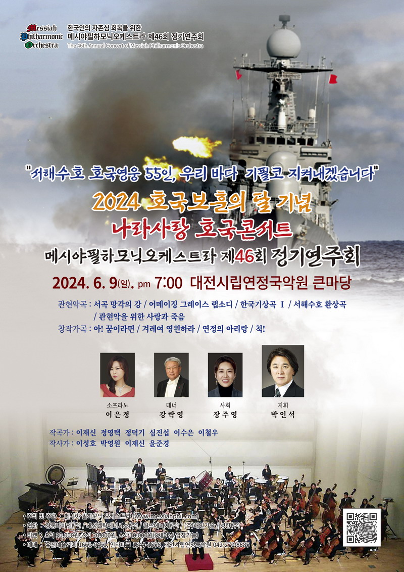 -.¿¬ÁÖȸ ¸í : ¡°¼ÇؼöÈ£ È£±¹¿µ¿õ 55ÀÎ, ¿ì¸® ¹Ù´Ù ±âÇÊÄÚ ÁöÄѳ»°Ú½À´Ï´Ù¡± 2024 ¼ÇؼöÈ£ÀÇ ³¯ ±â³ä ³ª¶ó»ç¶û È£±¹ÄܼƮ ºñ¿µ¸®¹Î°£´Üü ¸Þ½Ã¾ßÇÊÇϸð´Ð¿ÀÄɽºÆ®¶ó Á¦46ȸ Á¤±â¿¬ÁÖȸ -.¿¬ÁÖÀå¼Ò ¹× ÀϽà : 2024. 06. 09. 7½Ã ´ëÀü½Ã¸³¿¬Á¤±¹¾Ç¿ø Å«¸¶´ç